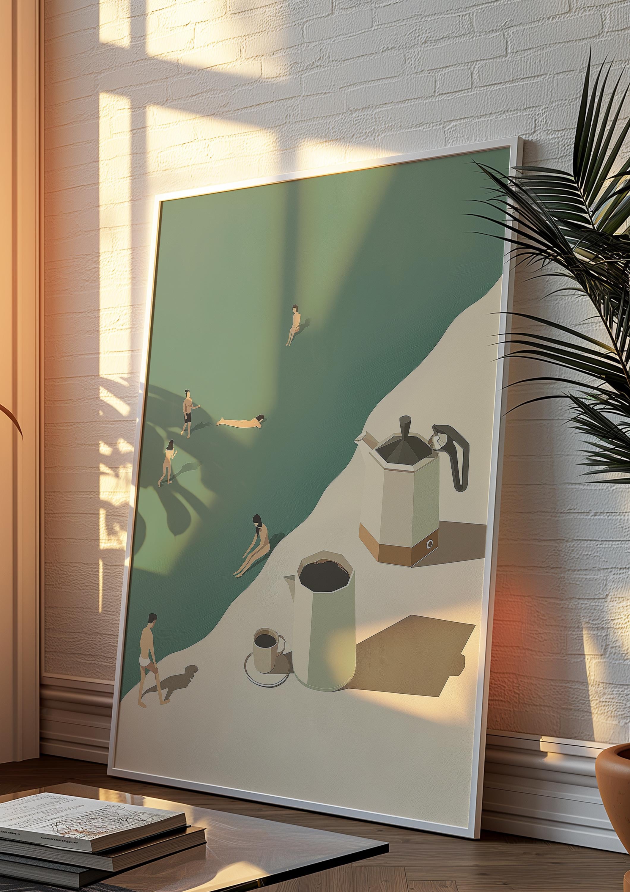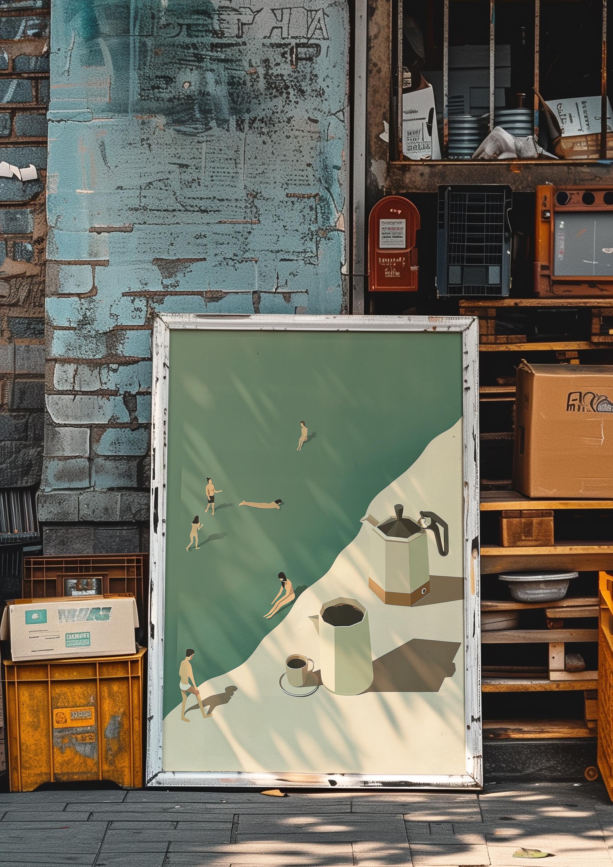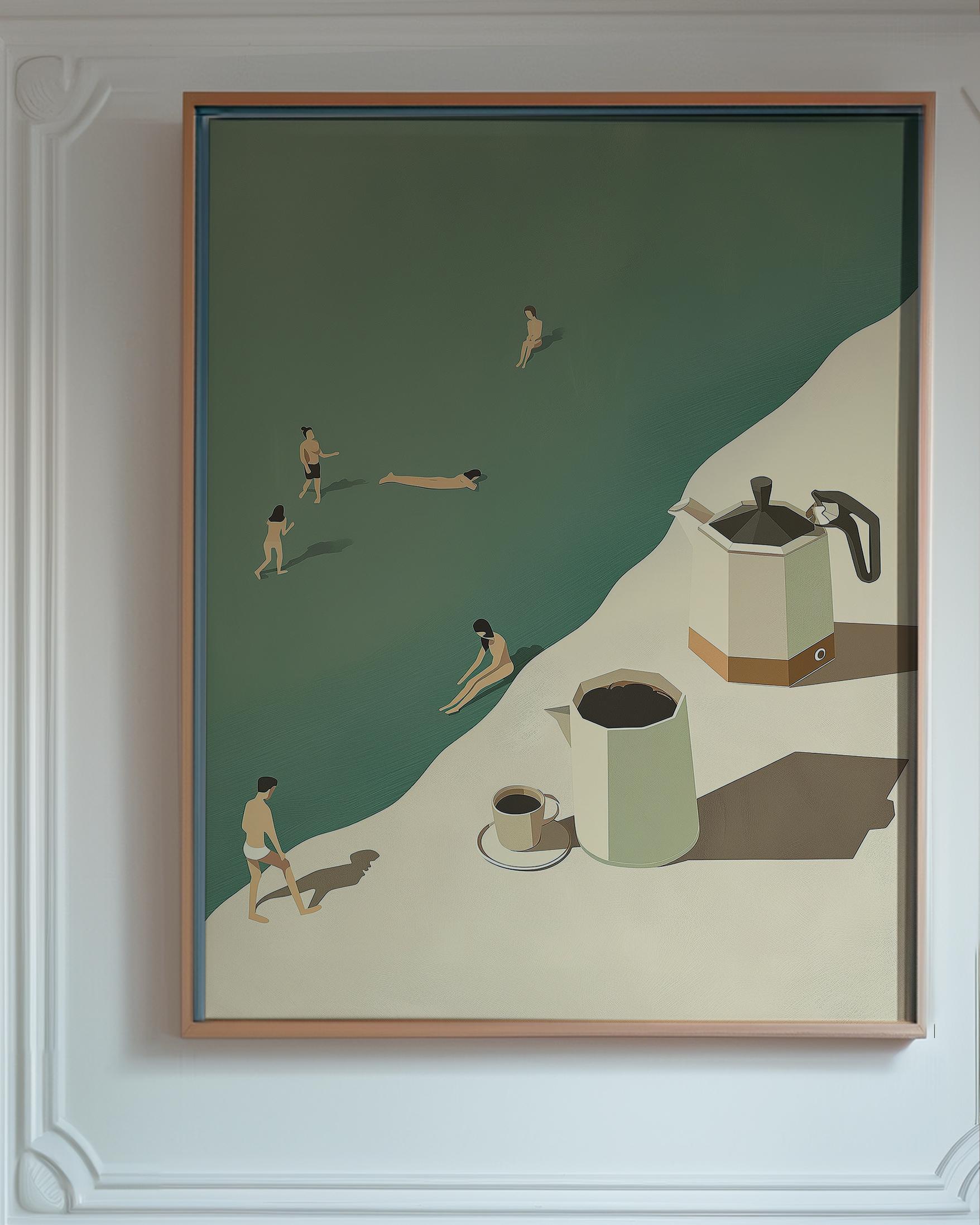 Tiny people. Big coffee energy. This funny, minimalist art print makes the perfect gift for anyone who loves their morning cup and a good laugh.