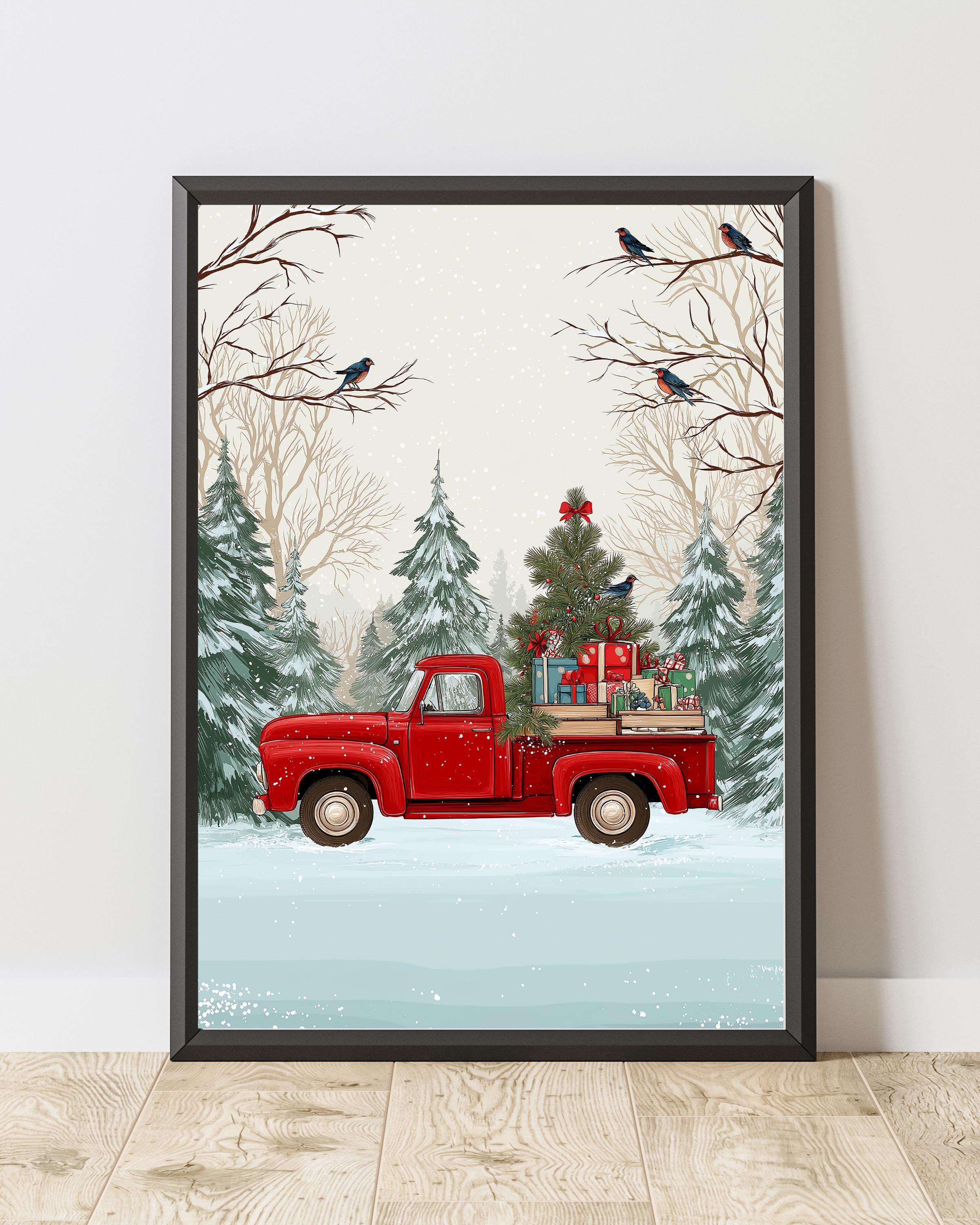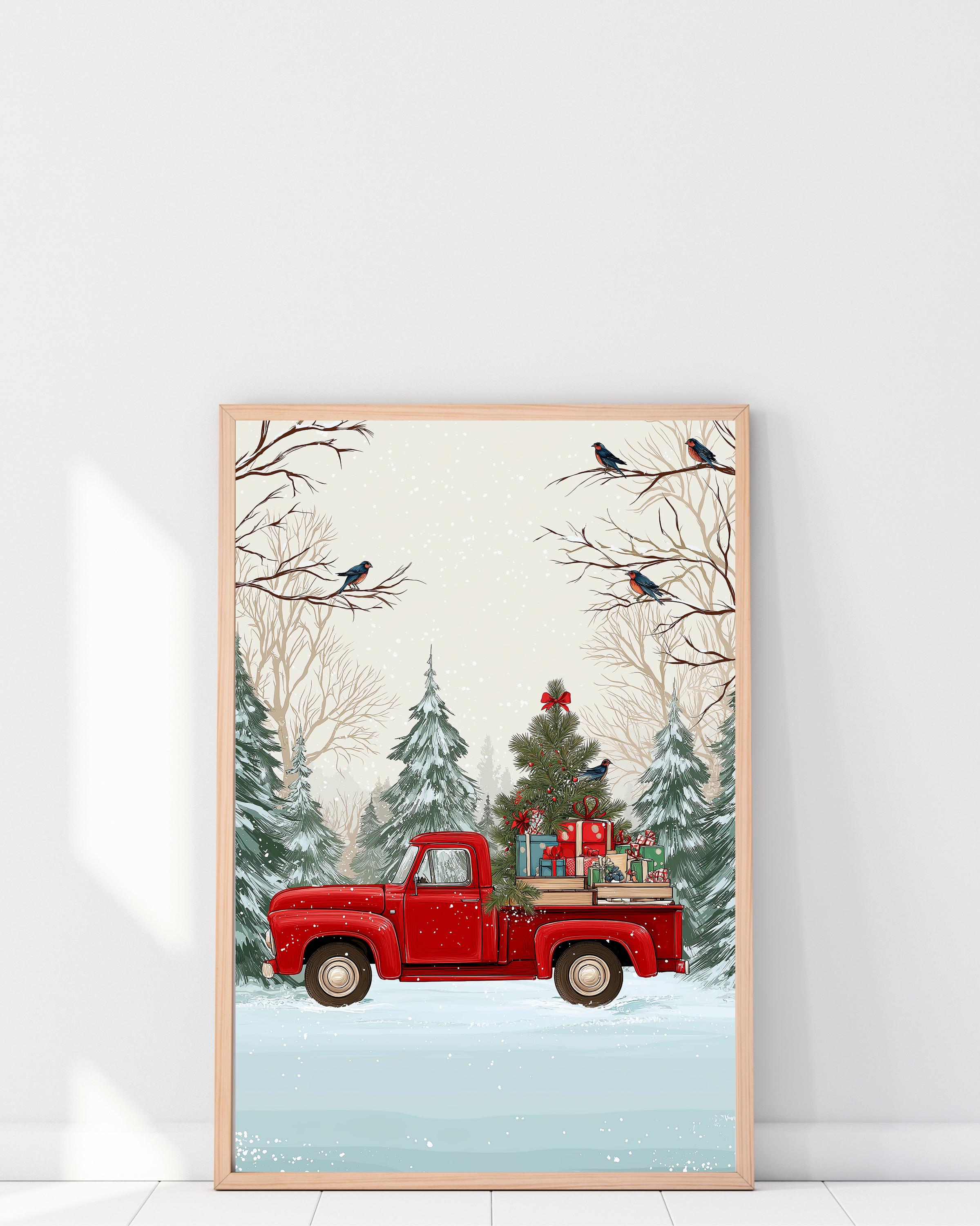 Vintage Red Truck Christmas Print: Holiday Wall Art