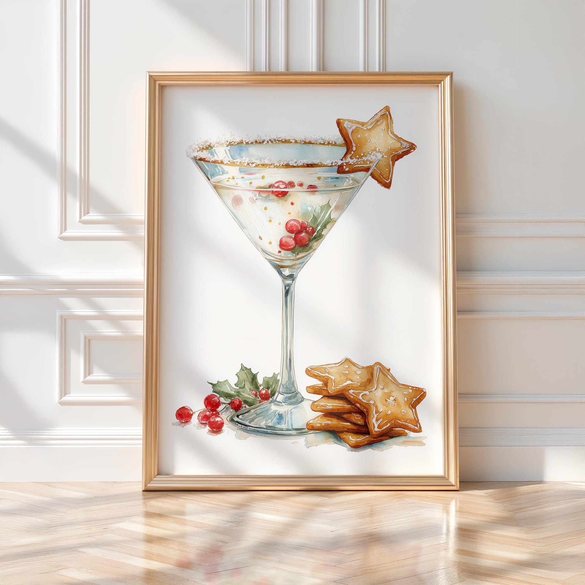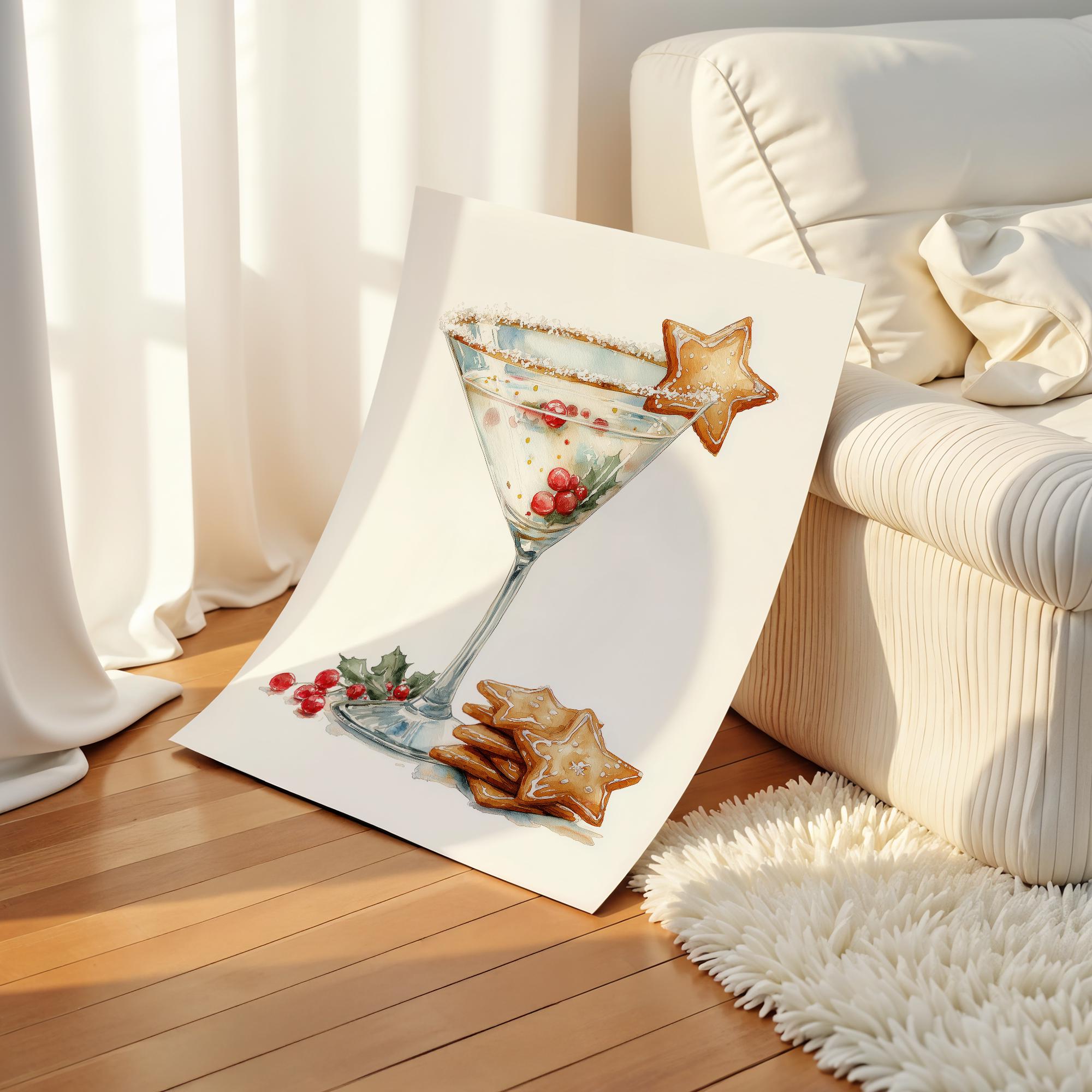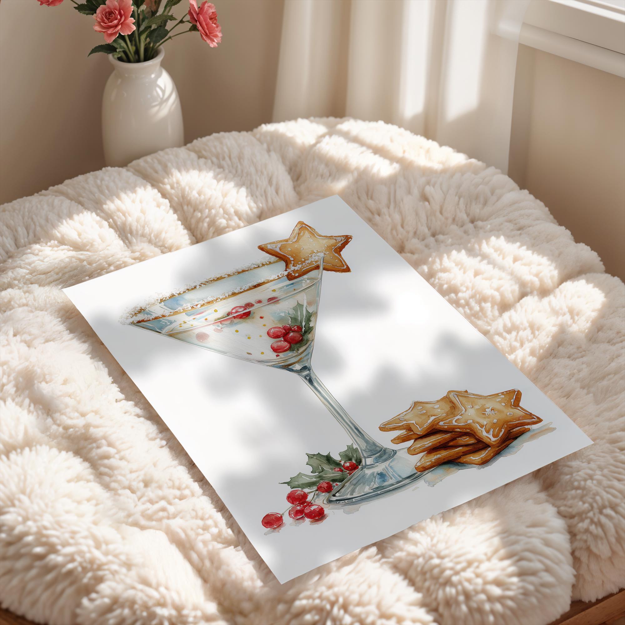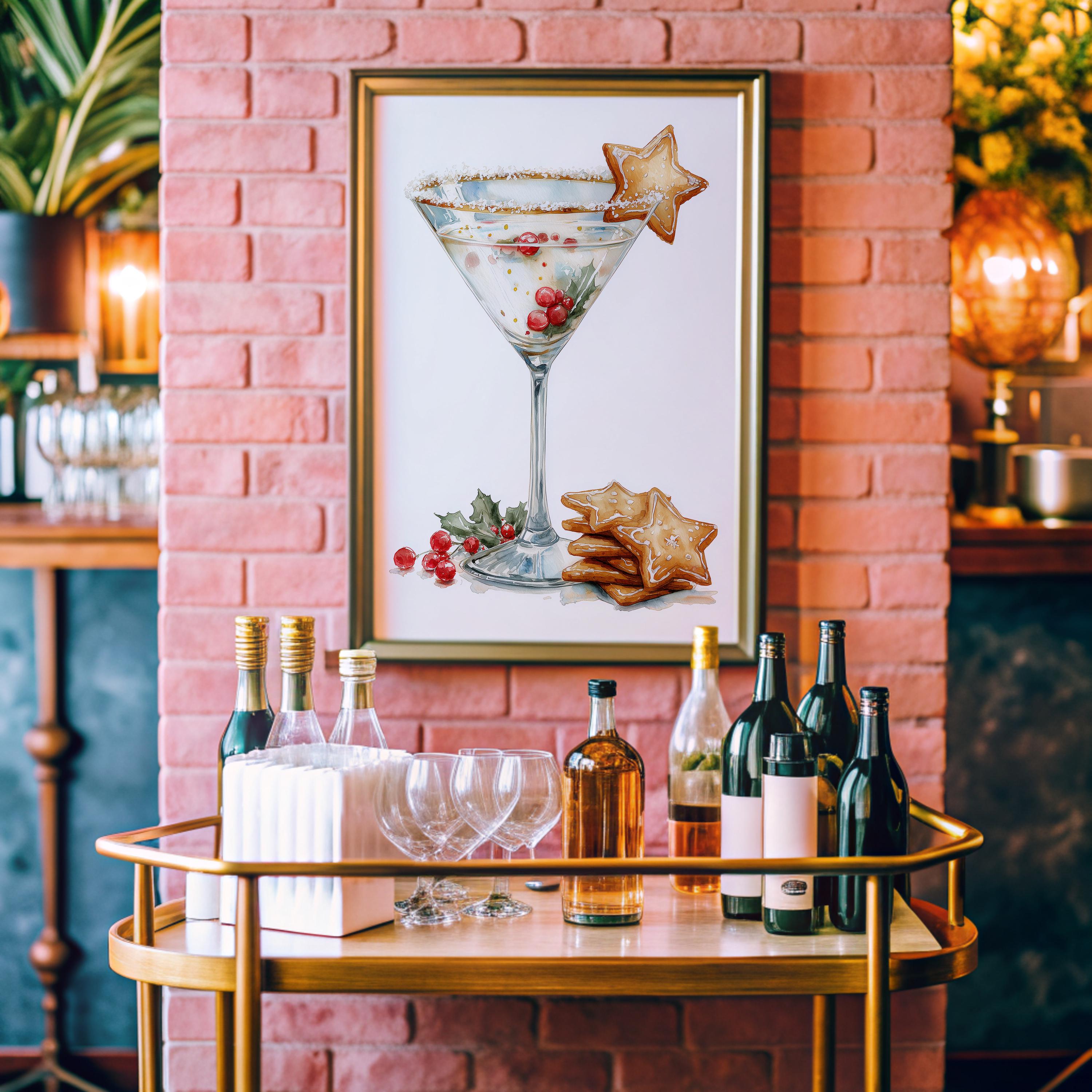 Gingerbread Martini Christmas Print | Festive Bar Cart Decor (Digital Download)